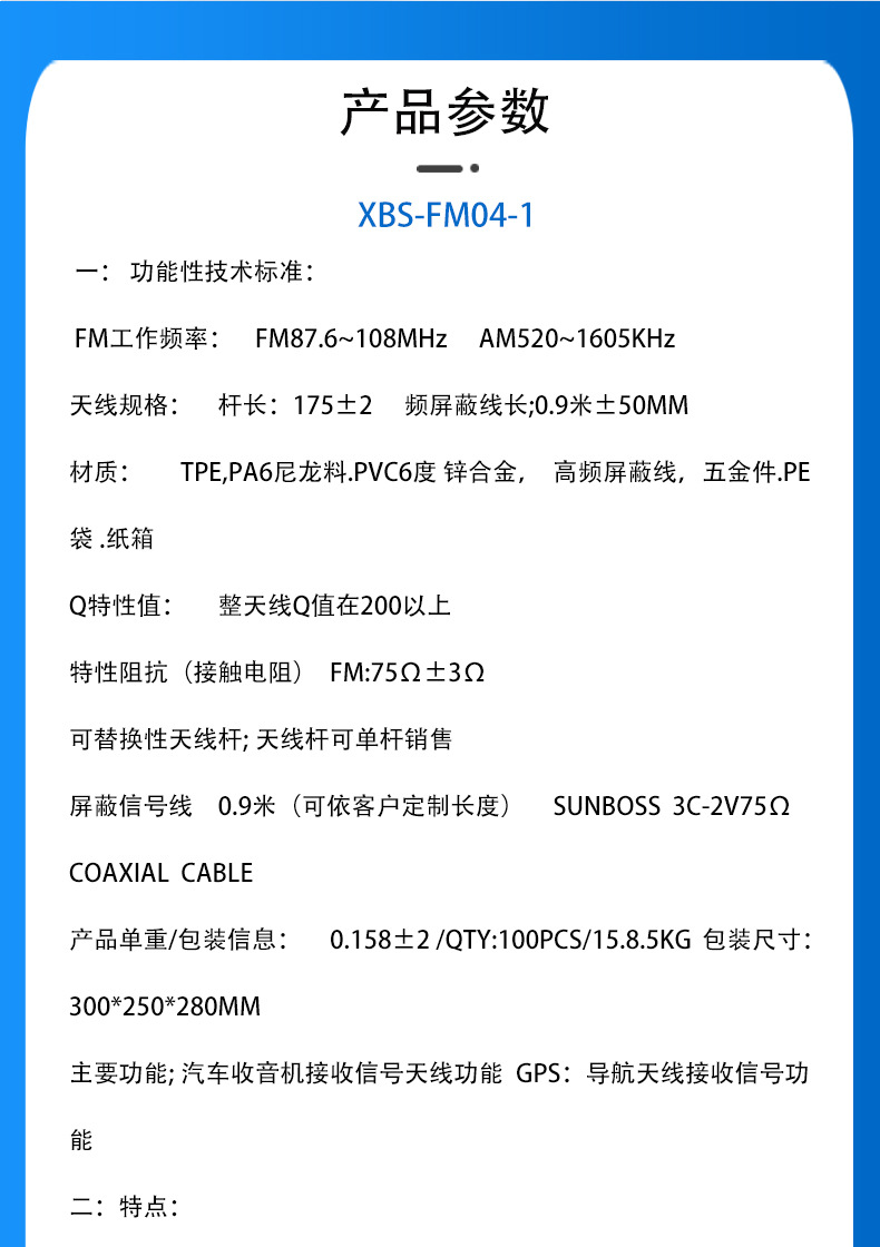 XBS-FM04-1 北汽系列天线新能源汽车天线 汽车收音机接收信号天线